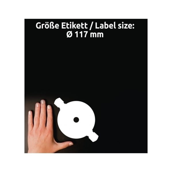 - Etykiety do indywidualnego oznaczania płyt CD w rozmiarze SuperSize etykiety zakrywają całą powierzchnię płyty, dając więcej miejsca na informacje i grafikę