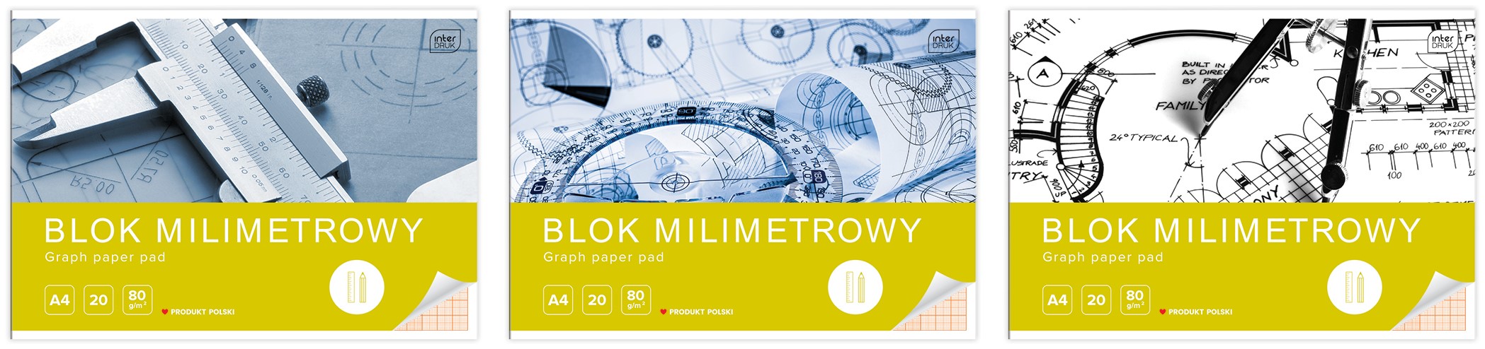 Blok techniczny w formacie A3 zawierający 20 arkuszy papieru milimetrowego o gramaturze 80 g/m². Idealny do szkiców, rysunków technicznych oraz precyzyjnych wykresów i obliczeń.