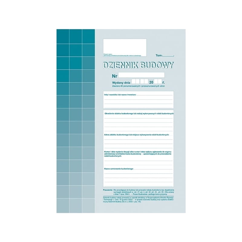 Dziennik budowy offsetowy A4 20 kartek MICHALCZYK I PROKOP druk dwustronny