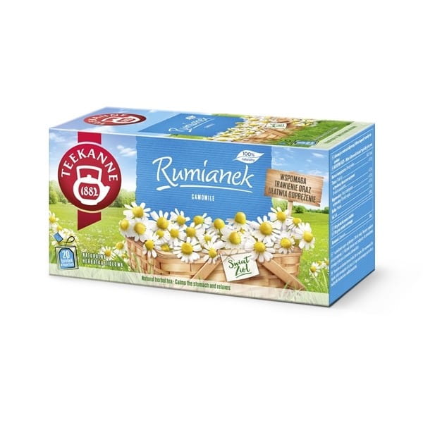 - Do produkcji herbaty ziołowej TEEKANNE Rumianek stosujemy wyłącznie najlepsze składniki, co sprawia, że ta herbatka jest zachwycającym naparem o delikatnym smaku.