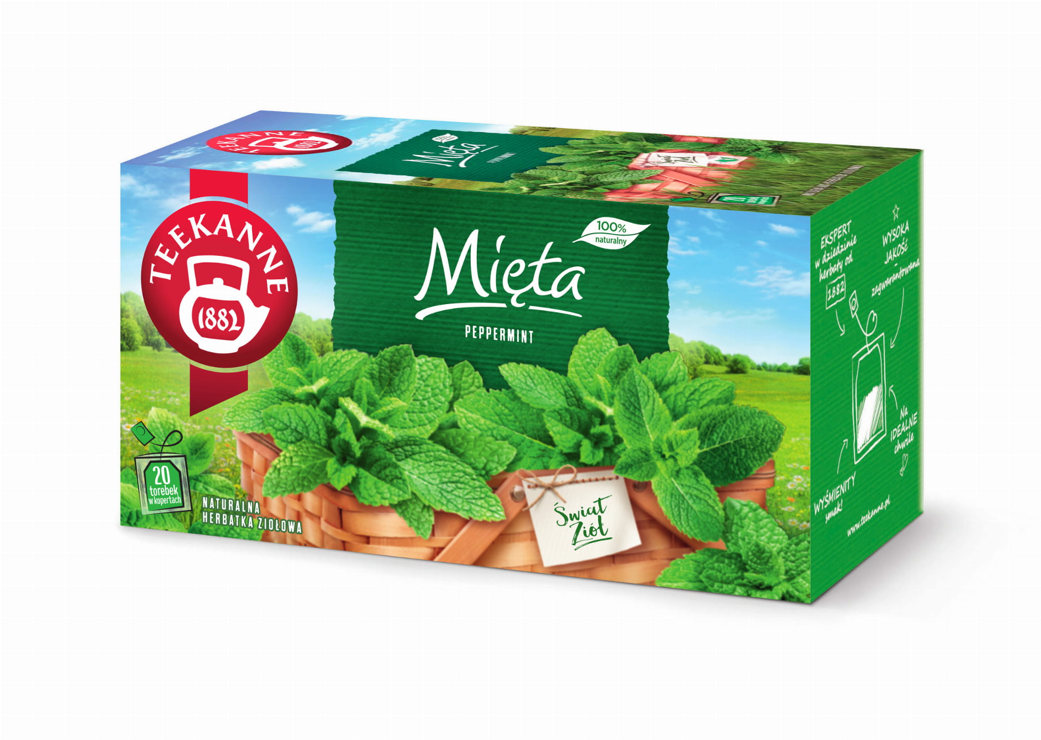 - TEEKANNE "Peppermint" to przyjemny napar ziołowy o orzeźwiającym, aromatycznym smaku.