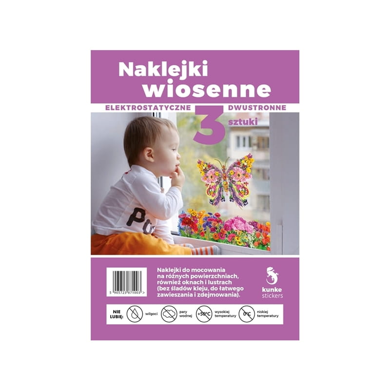 Naklejki/ozdoby elektrostatyczne KUNKE STICKERS dwustronne wiosenne mix wzorów 3szt. /CB68-304FE/