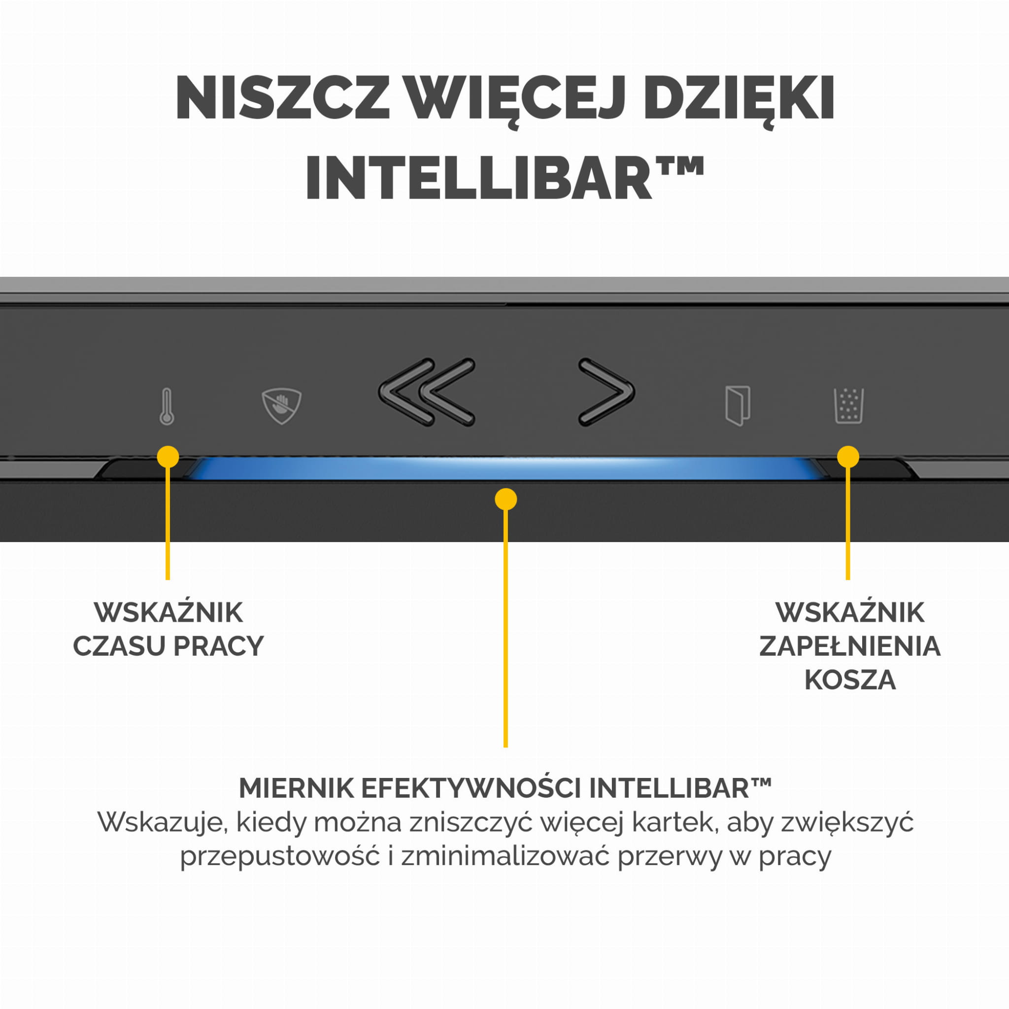 - Niszczarka zapewnia wysoki poziom zabezpieczenia niszczonych materiałów: P-4 w przypadku dokumentów papierowych i T-4 dla kart kredytowych