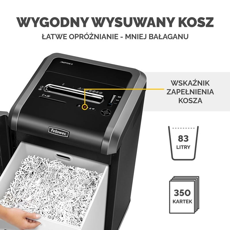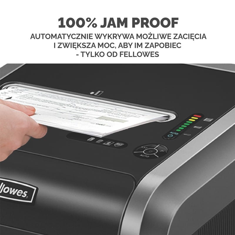 - Eliminuje uciążliwe zacięcia dokumentów dzięki systemowi 100% Jam Proof - elektronicznemu czujnikowi ilości niszczonych kartek