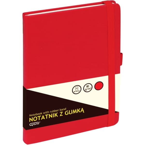 Notatnik A5/80 kratka GRAND oprawa twarda z gumką czerwony /150-1382/