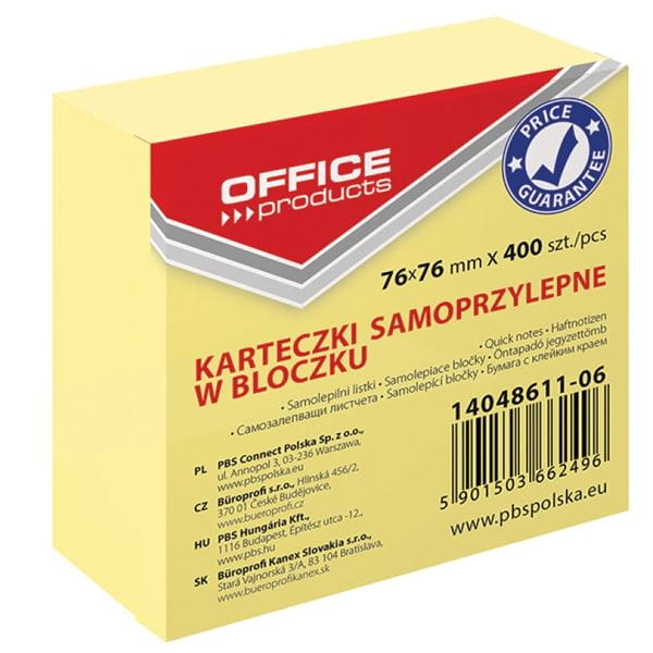 Notes samoprzylepny 76x76mm 400 kartek żółty OFFICE PRODUCTS /14048611-06/
