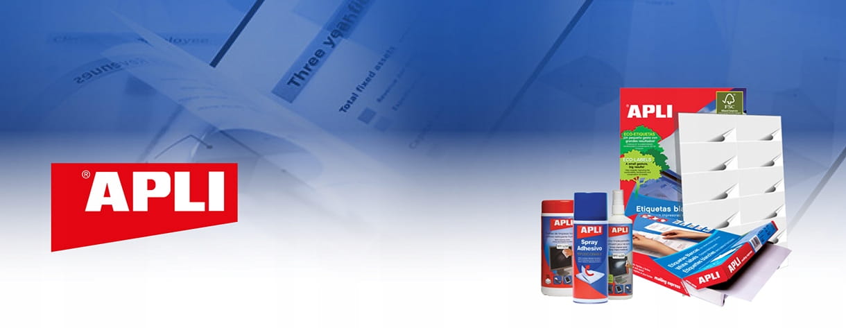 OPIS MARKI APLI: Hiszpańska firma, wyspecjalizowana w produkcji etykiet i materiałów samoprzylepnych, akcesoriów czyszczących, etykiet do drukarek igłowych, folii do rzutników, papierów specjalnych, wizytówek, folii samoprzylepnych oraz etykiet na CD/DVD. Certyfikat ISO9001