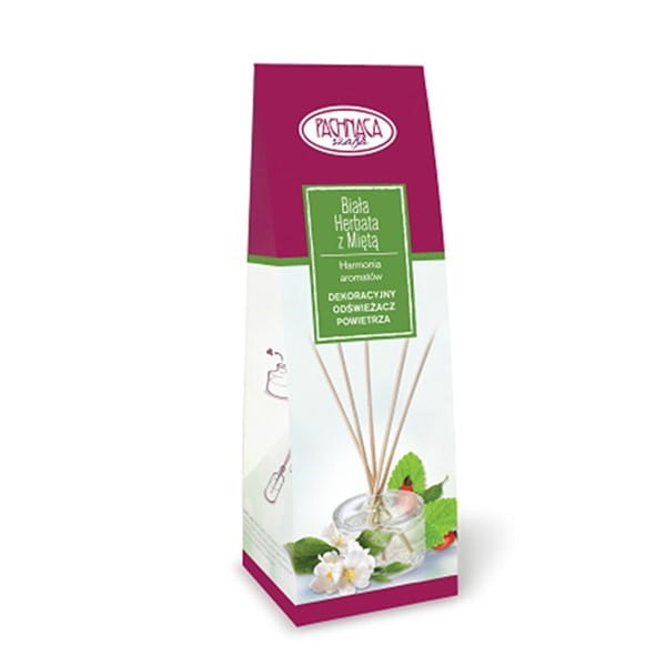 - Odświeżacz powietrza dekoracyjny PACHNĄCA SZAFA biała herbata z miętą to połączenie świeżego zapachu mięty z aromatem herbacianych listków sprawi, że dom wypełni się pięknym aromatem