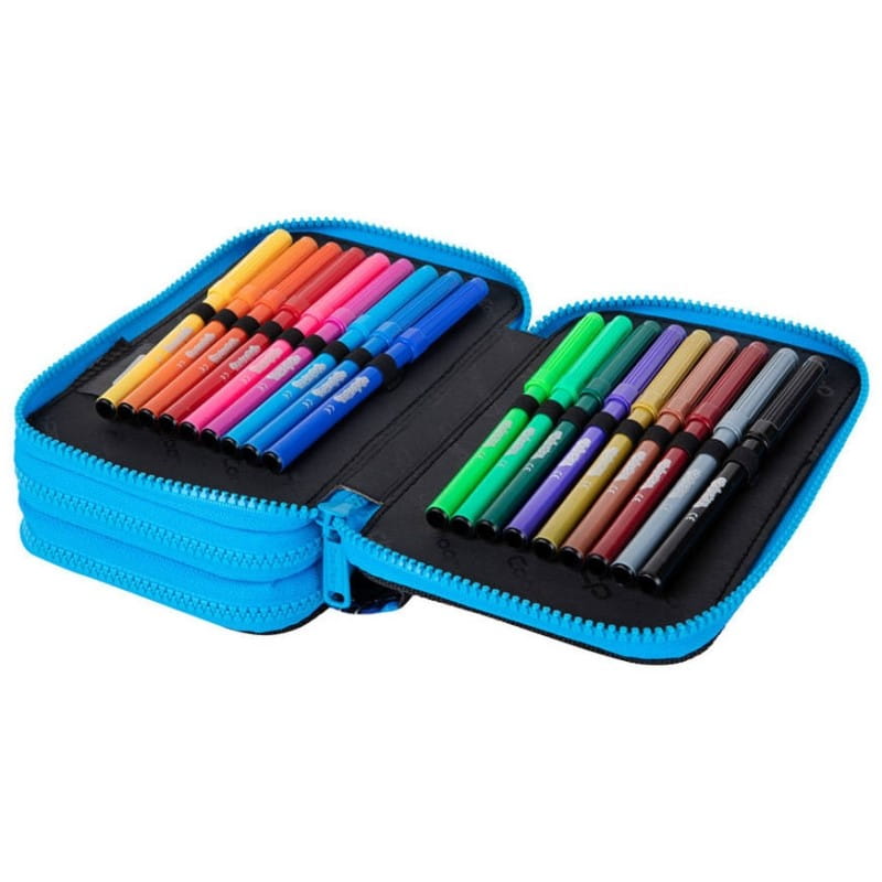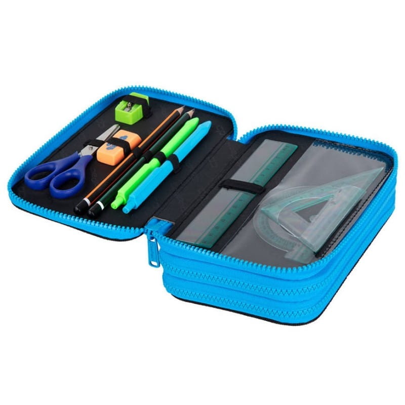 piórnik z wyposażeniem, trzykomorowy