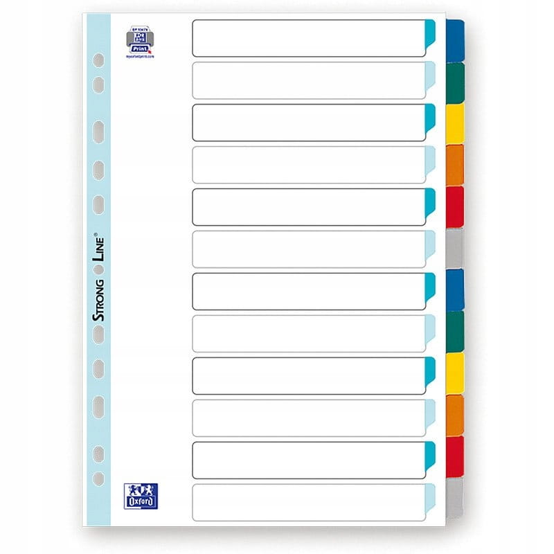 PRZEKŁADKI A4 KARTONOWE 1-12 BEZ NADRUKU LAMINOWANE KOLOROWE INDEKSY Z KARTĄ OPISOWA ELBA