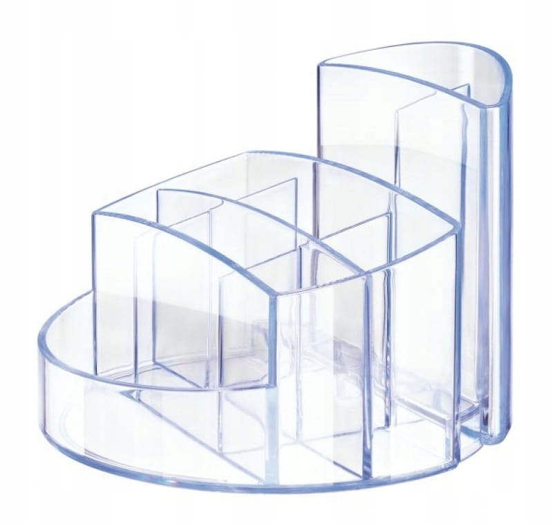 duże, przeznaczone na artykuły piśmienne(mieści ok. 40 długopisów)1 przeznaczona na karteczki, bloczki, wizytówki, etc.1 tylna, przeznaczona na 2 płyty CD/DVD, ulotkireklamowe, pocztówki, koperty, etc.