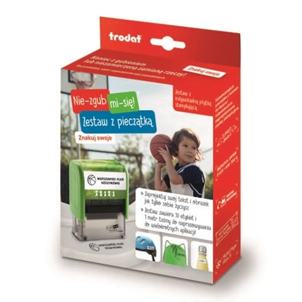Pieczątka do znakowania ubrań TRODAT 8911 NIE-ZGUB MI-SIĘ z taśmą do naprasowania