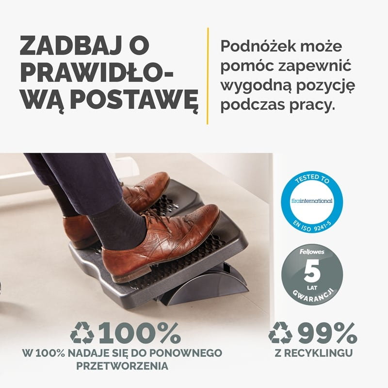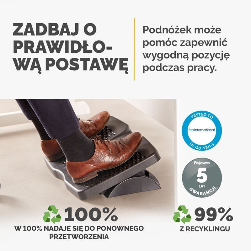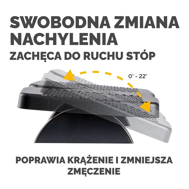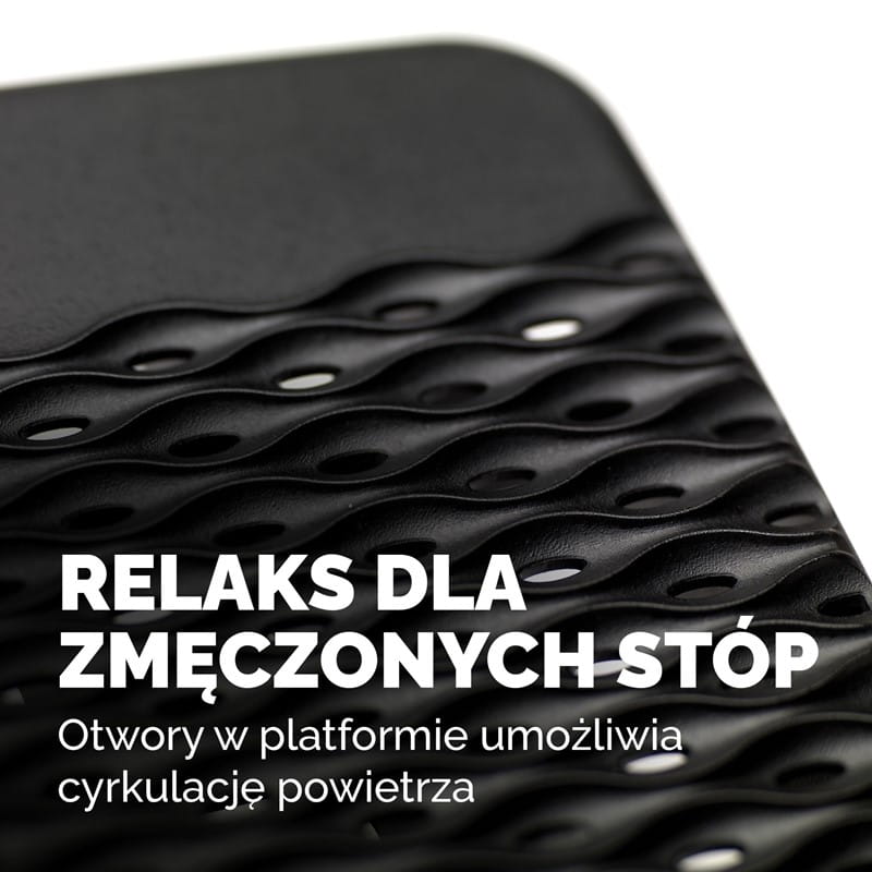 - Platforma porusza się wraz z użytkownikiem i zachęca do ułożenia nóg w najbardziej naturalnej pozycji