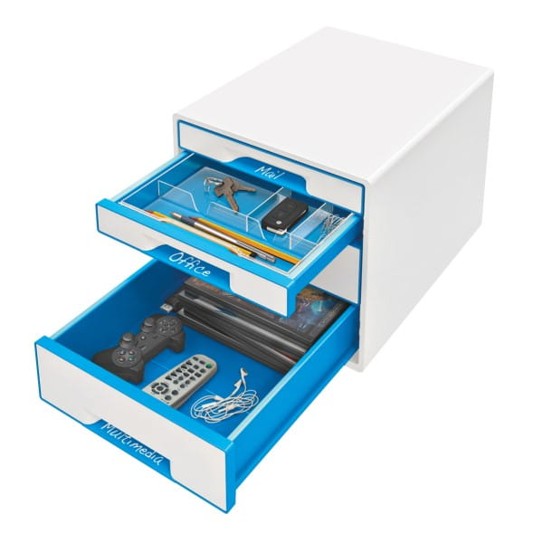Pojemnik z 4 szufladami LEITZ WOW perłowy biały / niebieski /521320036/