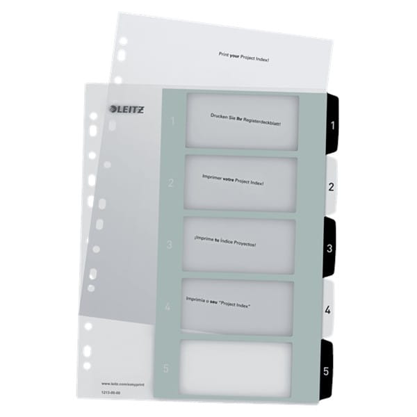 Przekładki A4 MAXI PP 1-5 numeryczne transparentne z biało czarnymi indeksami do nadruku LEITZ WOW