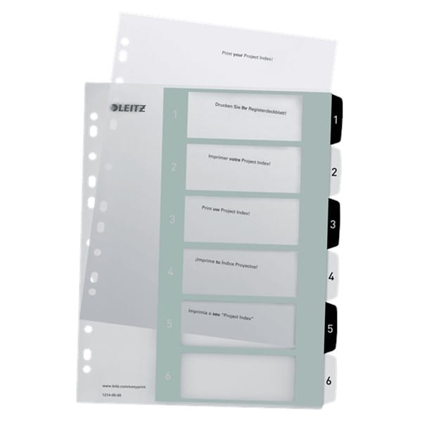 Przekładki A4 MAXI PP 1-6 numeryczne transparentne z biało czarnymi indeksami do nadruku LEITZ WOW
