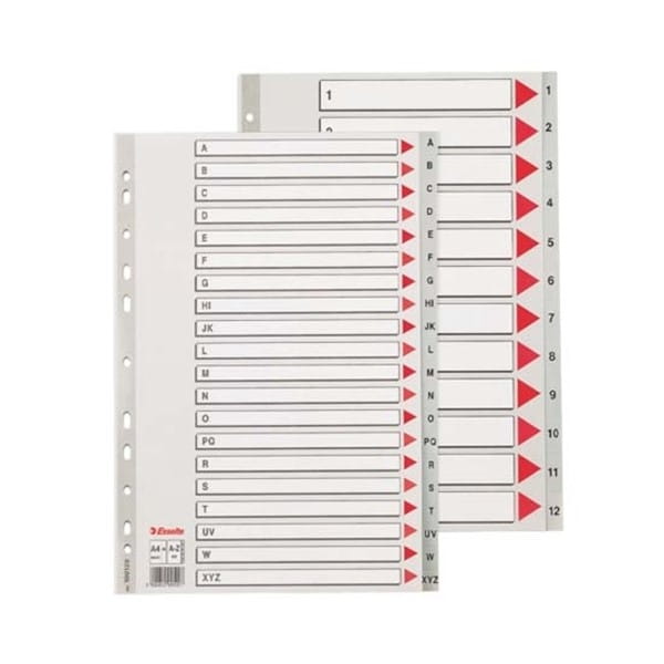 Przekładki A4 MAXI PP A-Z alfabetyczne szare ESSELTE /100129/