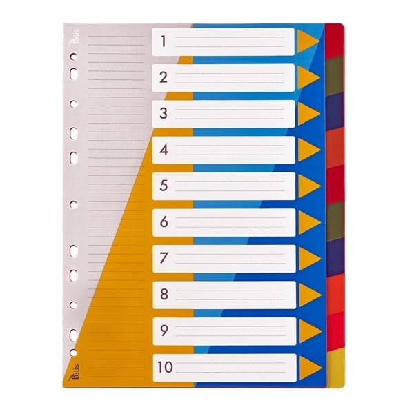 Przekładki A4 PP 1-10 bez nadruku kolorowe
