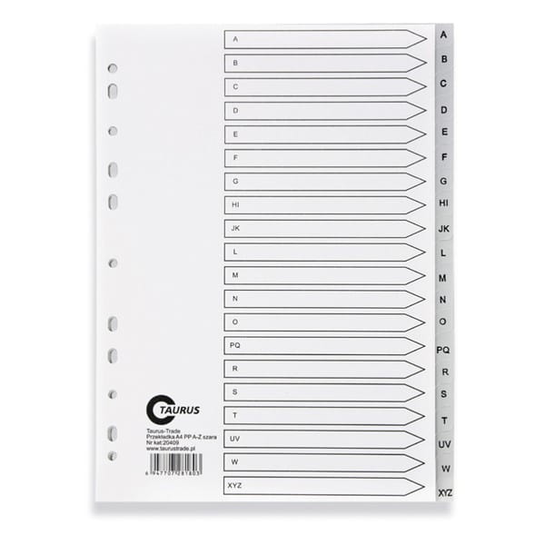 Przekładki A4 TAURUS alfabetyczne A-Z, szare /20409/