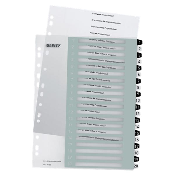 Przekładki A4 maxi PP 1-20 numeryczne transparentne z biało czarnymi indeksami do nadruku LEITZ WOW