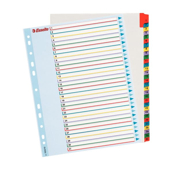 Przekładki A4 maxi kartonowe 1-31 numeryczne białe z kolorowymi indeksami MYLAR ESSELTE /100210/