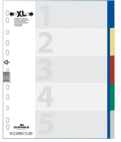 Przekładki A4 wykonane z PP kolorowe indeksy 5 części poszerzone 6737 27
