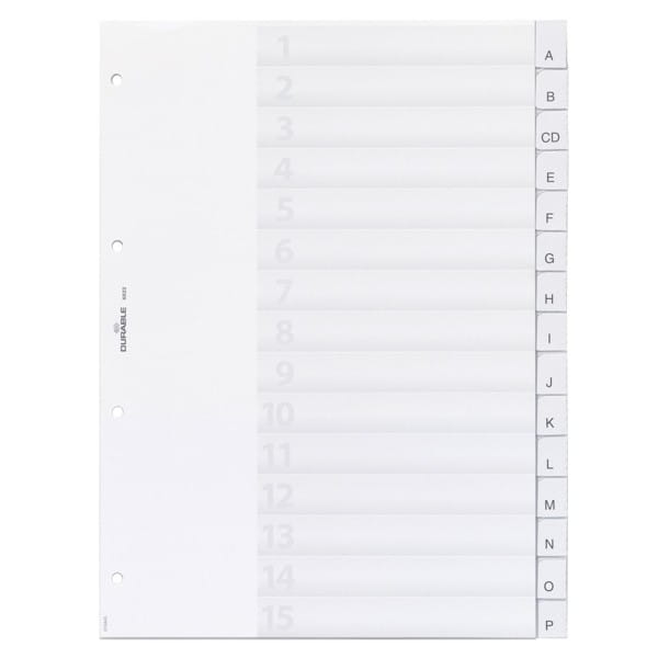 Przekładki A4 wykonane z PP zgrzane wymienne indeksy 0-15 A-Z przezroczyste 682219
