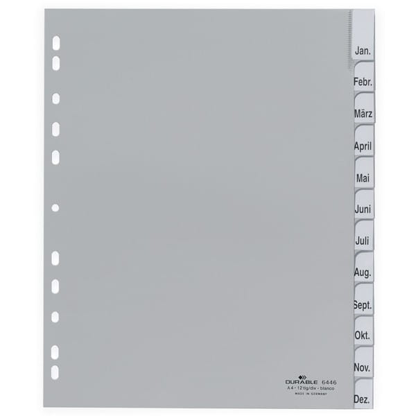 Przekładki A4 wykonane z PP zgrzane wymienne indeksy specjalna szerokość 12-częściowe szare/644610/