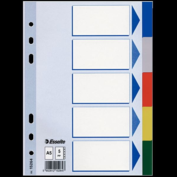 Przekładki A5 PP 1-5 bez nadruku z kolorowymi indeksami ESSELTE /15264/