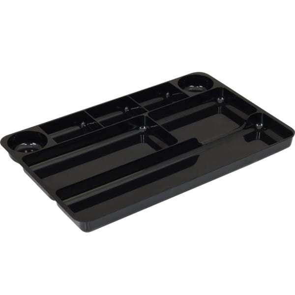 – przybornik płaski wykonany z wysokiej jakości tworzywa – posiada 8 przegródek – wymiary: 355x228x25 mm "