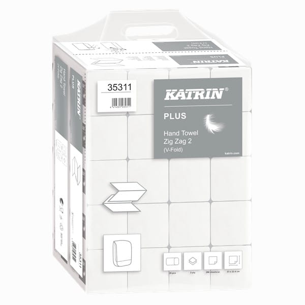 Ręcznik ZZ biały celuloza 2-warstwowy 2x18g 4000 LISTKÓW = 20op. x 200 listków 23x22,4cm niepylący KATRIN PLUS HANDY PACK /35311/