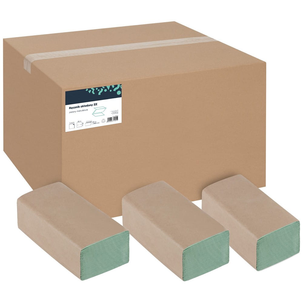 Ręcznik ZZ zielony makulatura 1-warstwowy 38g 4000szt. 20op. X 200 listków 23x25cm