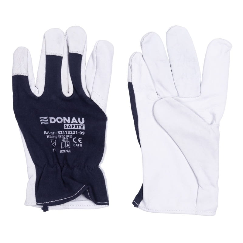 Rękawice montażowe z kozią skórą po stronie dłoni DONAU SAFETY rozmiar S/7 biało-granatowe ze ściągaczem 2szt. /32113221-07/