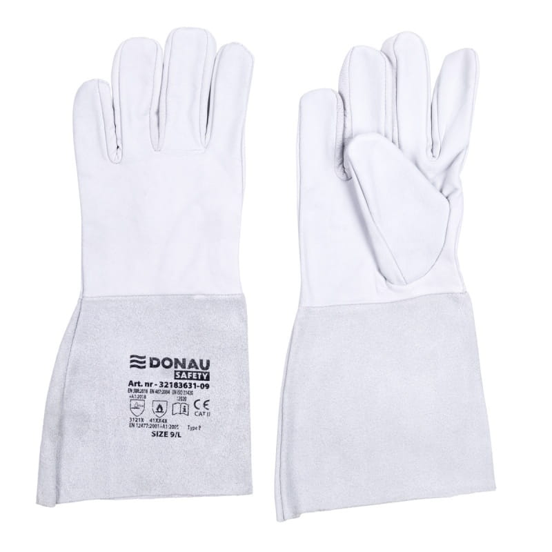Rękawice spawalnicze TIG z koziej skóry DONAU SAFETY rozmiar L/9 biało-szare 2szt. /32183631-09/