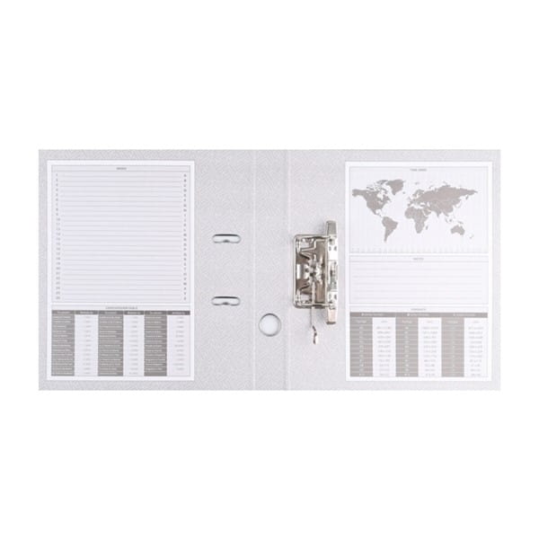 - wewnątrz wyklejka papierowa z indeksem, tabelą formatów, mapą stref czasowych oraz miejscem na notatki