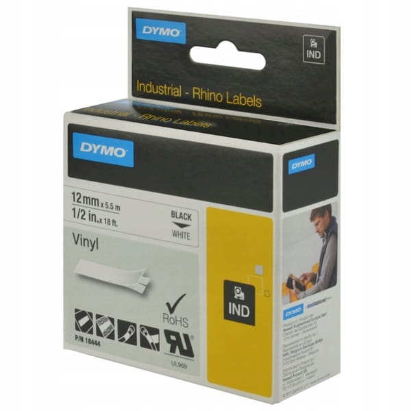 Taśma do drukarek S0718600 produkowana przez markę Dymo dla drukarek RhinoKolor taśmy biały winylowa, nadruku czarnyDługość taśmy wynosi 12mm, szerokość 5,5mmPrzykleja się do prawie każdej czystej powierzchniPasuję do drukarek Dymo:Dymo Rhino 4200,Dymo Rhino 5000,Dymo Rhino 5200,Dymo Rhino 6000,Dymo ILP-219,