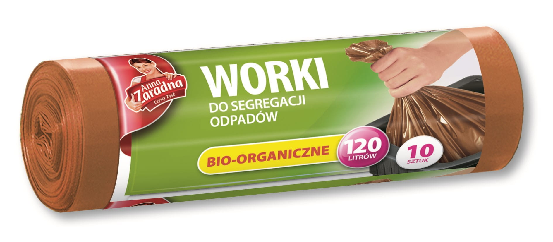 Worki na śmieci 120l LDPE Anna Zaradna do segregacji brązowe (bio) 10 sztuk
