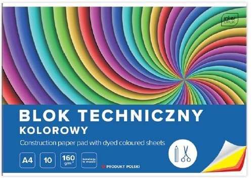 Blok techniczny A4 – 160 g, 10 kartek, kolorowy: