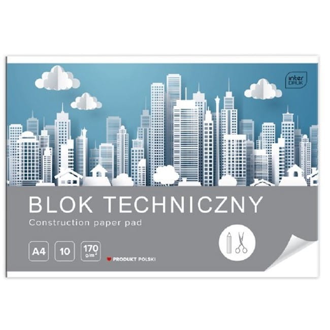 Blok techniczny A4 – 170 g, 10 kartek, biały: