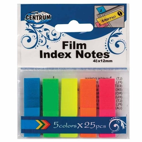 Zakładki indeksujące 12x45mm PP 5x25szt. CENTRUM 125szt. /CE80408/