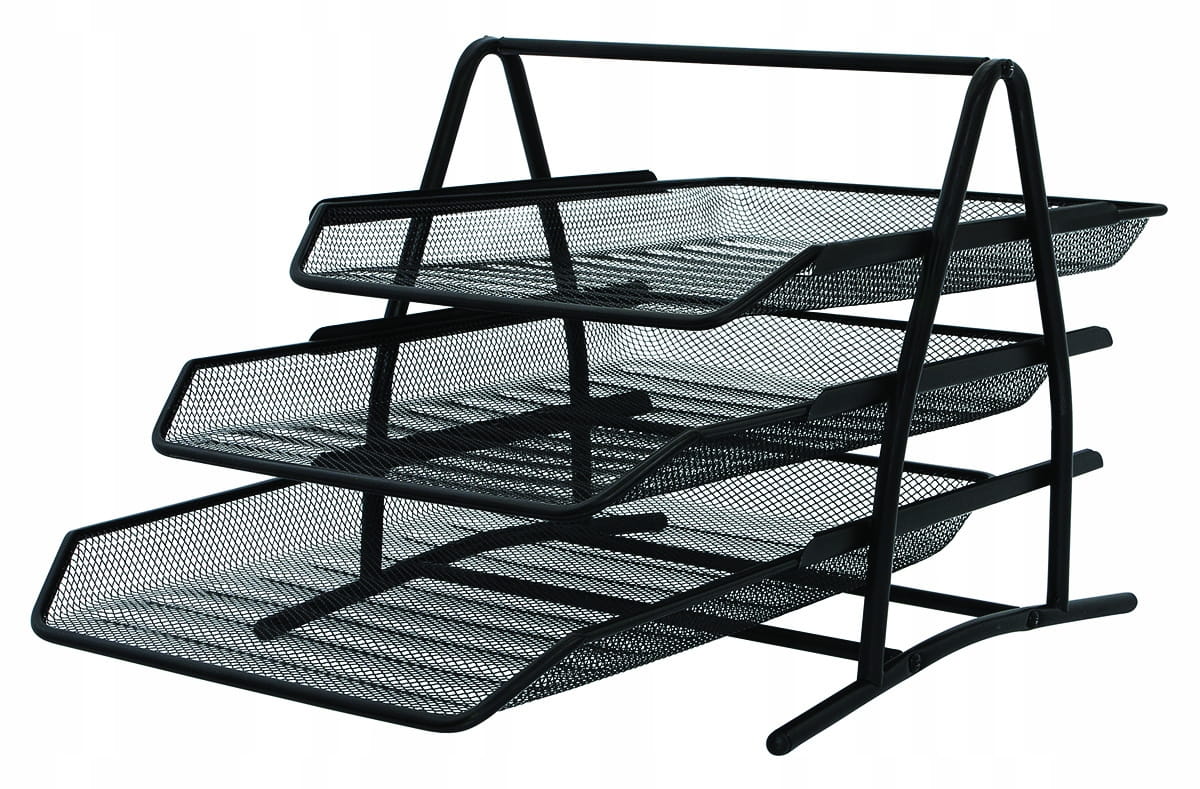- zestaw trzech wysuwanych szuflad wykonany z metalowej siateczki powlekanej lakierem